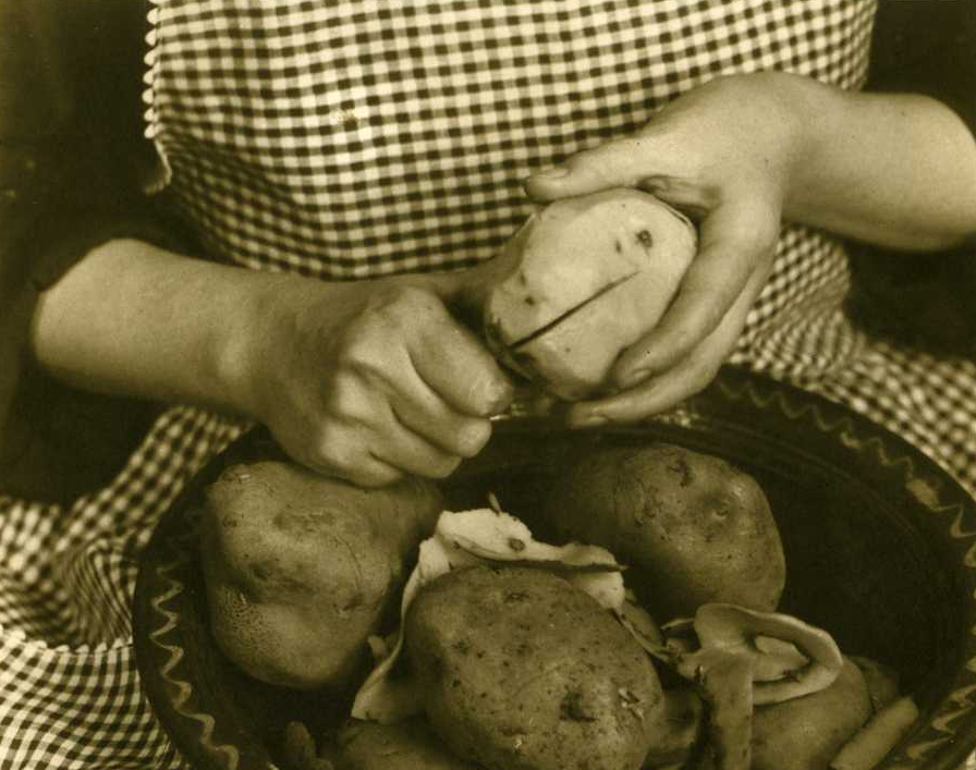 On these occasions, I pretend to chat with my mother, but really I’m watching the potato romanced from its rough casing – until it’s naked, white and vulnerable – held aloft in my mother’s scarred hand – burned in a grease fire during the Ford administration.